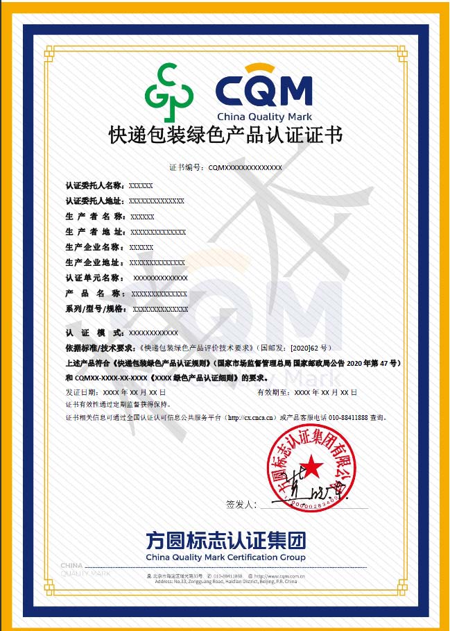 快递包装绿色产品认证