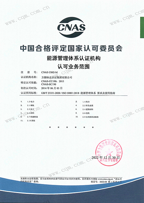 能源管理体系认证机构认可证书
