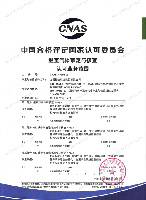 温室气体审定与核查认可证书