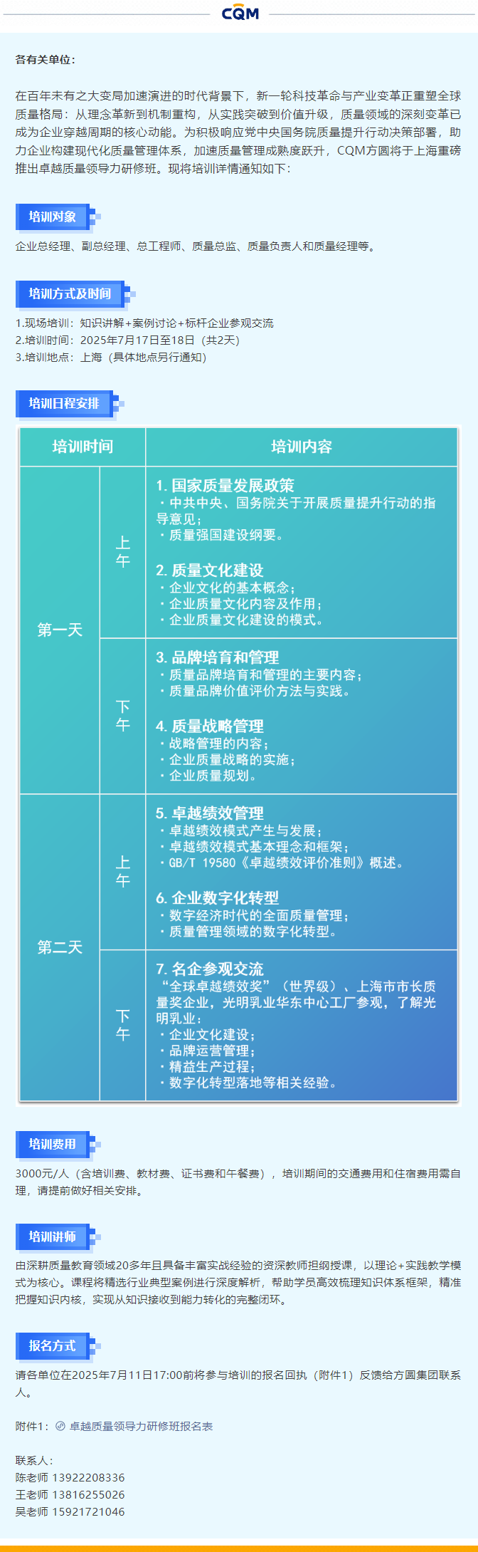 华体会体育(中国)HTH·官方网站举办卓越质量领导力研修班的通知