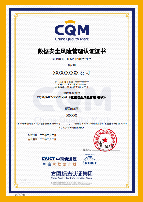 数据安全风险管理认证证书
