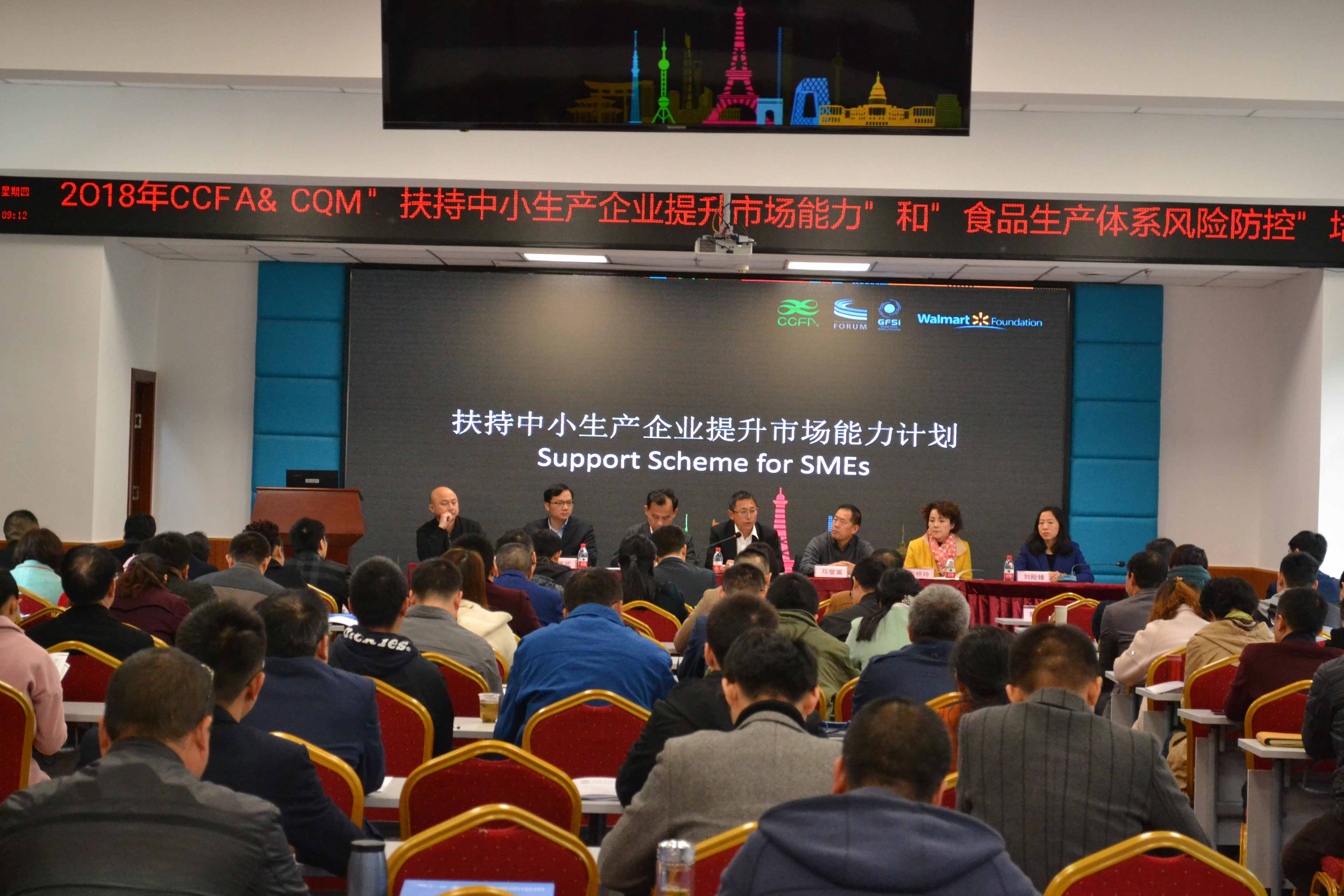 时间:2018年11月13日 为响应国家扶持中小企业发展战略,改善供给侧结构性改革过程中生产与消费不平衡、不充分的矛盾,提升中小生产企业市场能力,建立生产企业和消费者之间传递信任的通道,方圆标志认证集团(CQM)与中国连锁经营协会(CCFA)合作,于2018年11月8日在湖北武汉联合举办了为期两天的“扶持中小生产企业提升市场能力”和“食品生产体系风险防控”。来自政府、社会团体、生产企业的130余人参加了本次会议。