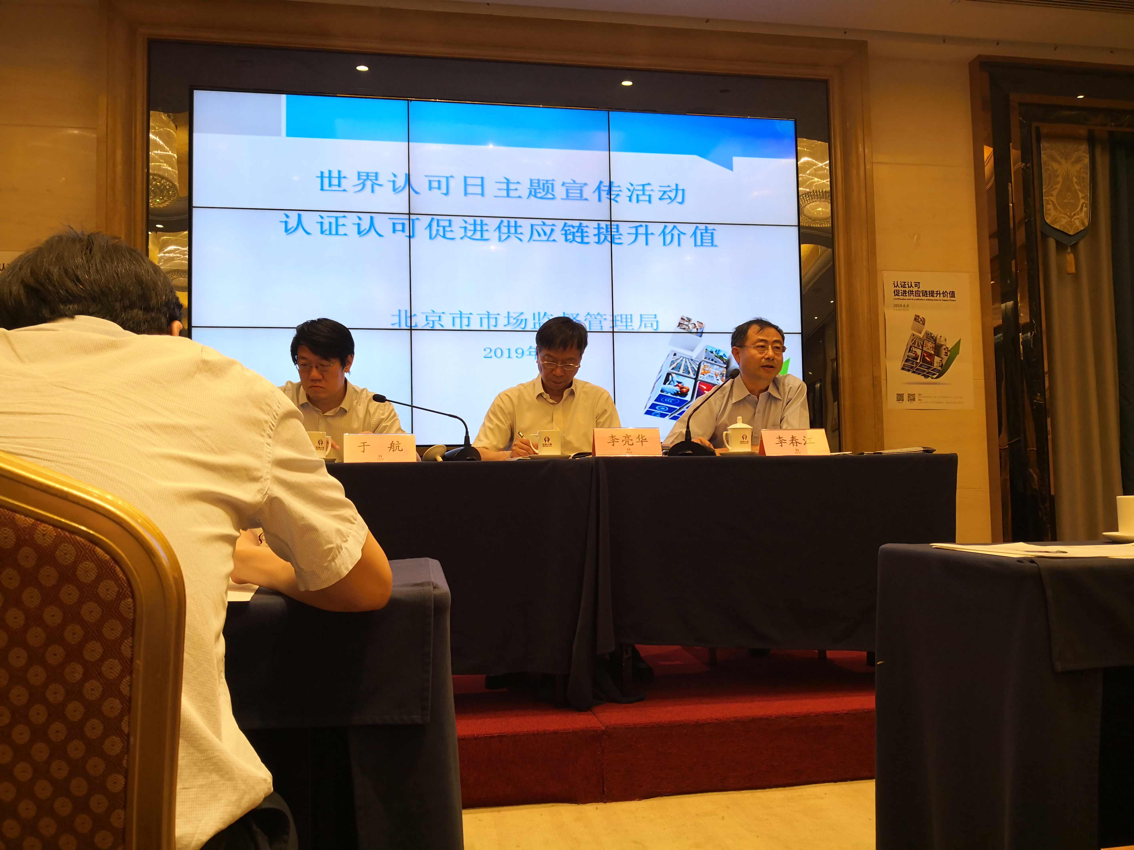 时间:2019年06月24日 2019年6月9日是第12个世界认可日,是世界各国宣传和推动认证认可检验检测工作的重要契机。为了贯彻落实党中央、国务院华体会体育(中国)HTH·官方网站推进质量认证体系建设的决策部署,进一步发挥认证认可的作用,加强市场监管,促进质量提升,推动经济社会又好又快发展,北京市市场监督管理局于6月21日在北京西藏大厦召开“世界认证认可日”宣传活动大会。国家市场监督管理总局认证监管司副司长李春江、北京市市场监管局副局长李亮华出席会议并讲话,方圆集团公司等认证机构代表、检测机构代表及企业代表应邀参加会议。