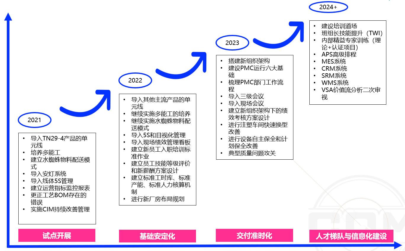 为此,培训顾问为企业制定了4年的精益实施路线图。