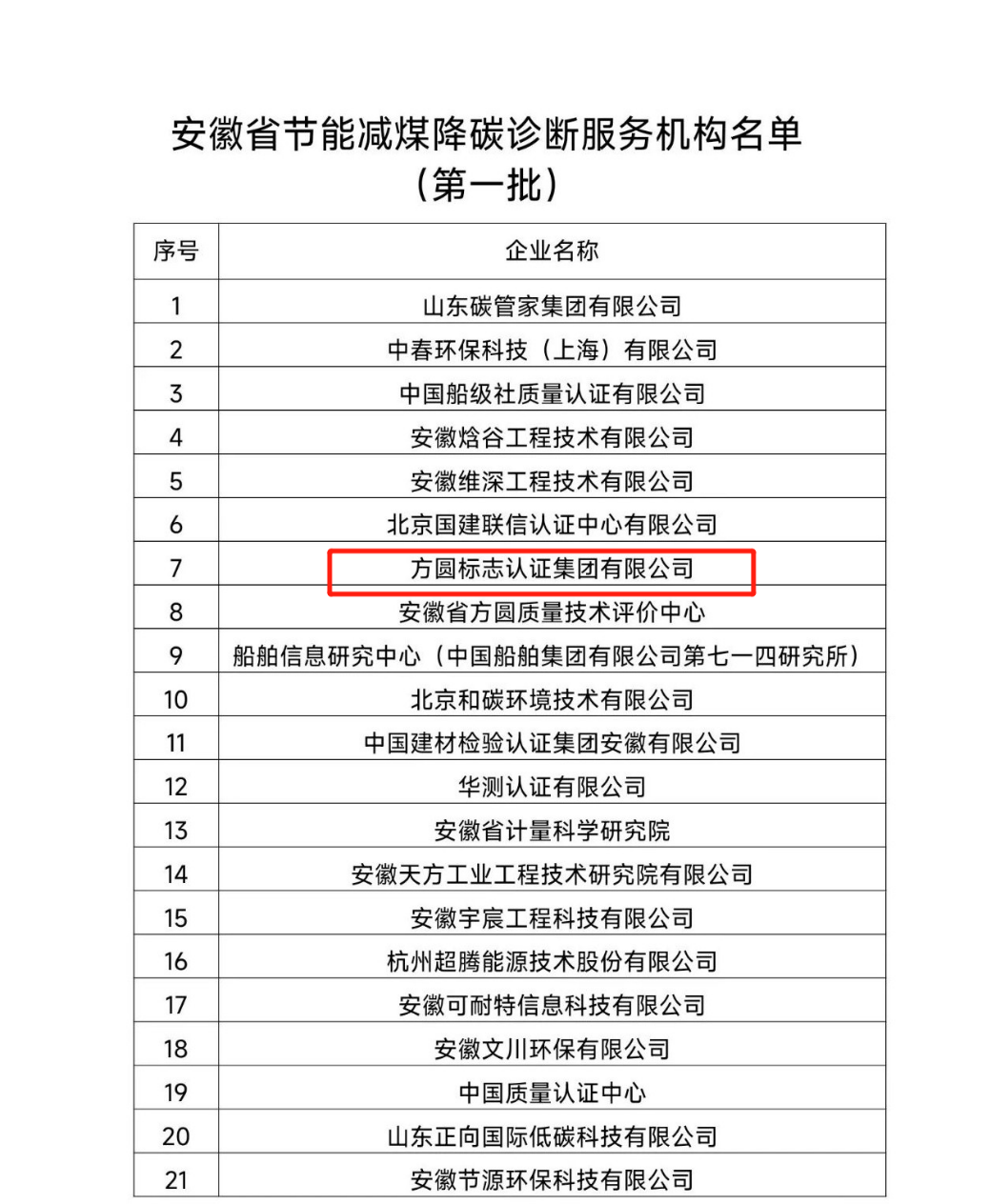 根据《安徽省发展改革委华体会体育(中国)HTH·官方网站征集安徽省节能减煤降碳诊断服务机构和合同能源管理合格供应商的通知》要求,经专家评审,方圆标志认证集团成功入选安徽省节能减煤降碳诊断服务机构名单(第一批)。