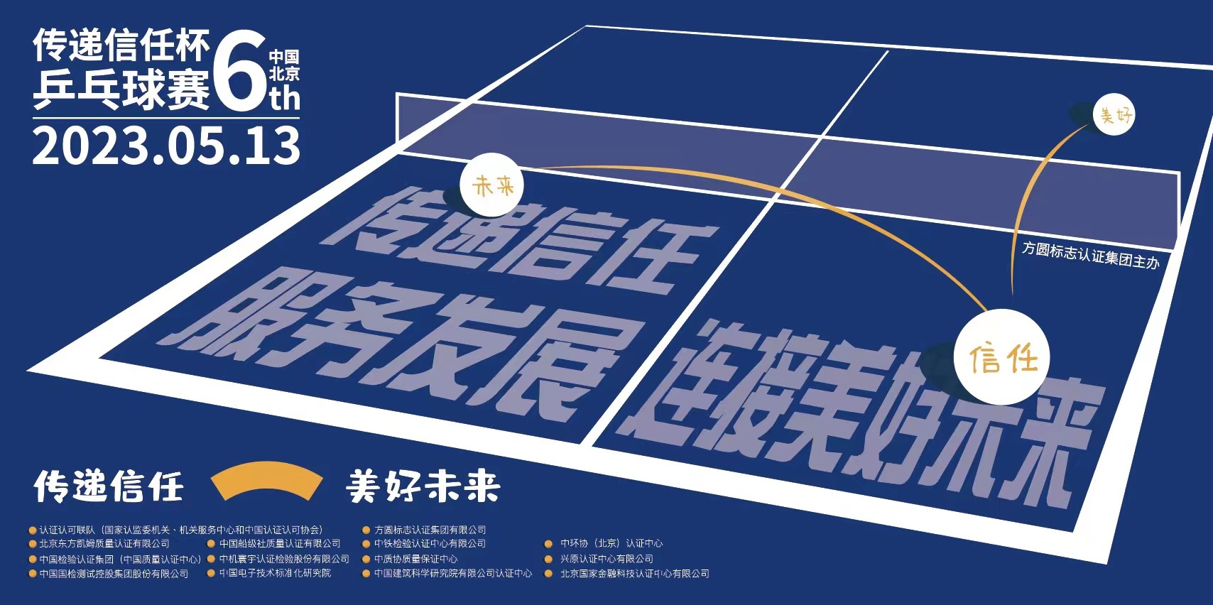 据悉,为做好此次乒乓球赛的筹备工作,方圆集团做了充分的创意策划。主背景板整张画面通过一张正在比赛的乒乓球台表达,比赛选手正在紧张而有节奏的挥拍挡拆,白色的乒乓球承载着大赛理念,在选手之间来回跳跃,不断传递信任,增进交流。每一位参赛的选手都是画外挥拍的人,都是信任的传递者,是体育精神的践行者,每一次乒乓球飞跃划过球网,都是一次信任和友谊的传递,都是现在与美好未来的连接。同时将全部参赛队都展现在主画面上,体现团结、友爱,认证认可行业机构间相互信任,协同发展,共赴美好未来的愿景。