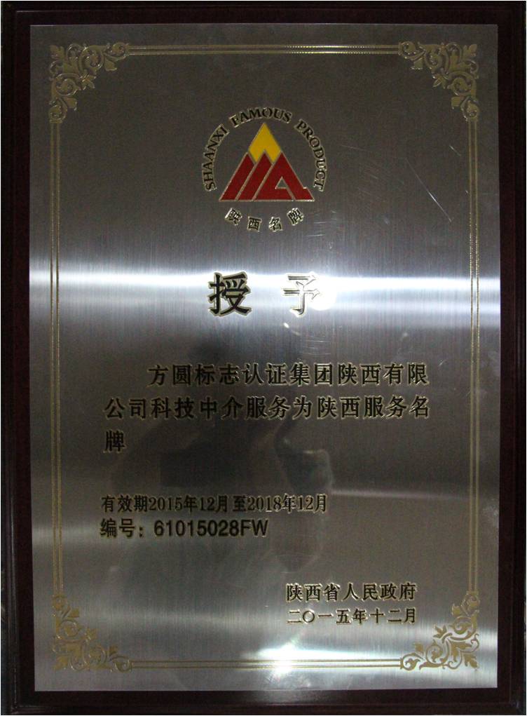 近日,陕西省质量强省工作推进委员会办公室发布通知,方圆陕西公司顺利获得首批陕西科技中介服务名牌称号。