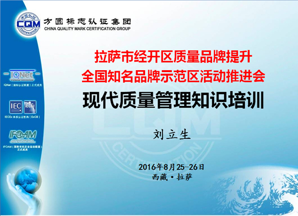 时间:2016年09月09日 为响应江苏对口支援拉萨工作,深入贯彻国务院《贯彻实施质量发展纲要2016年行动计划》,进一步落实《拉萨市人民政府华体会体育(中国)HTH·官方网站加强质量建设的若干意见》和质量强市战略,积极推广先进的质量管理方法,提升企业质量管理水平,倡导企业走质量效益型发展道路,应拉萨市质量技术监督局的邀请,2016年8月24至28日方圆江苏公司派出专家组赴西藏拉萨市举办现代质量管理知识培训、推进拉萨知名品牌示范区建设专题活动。