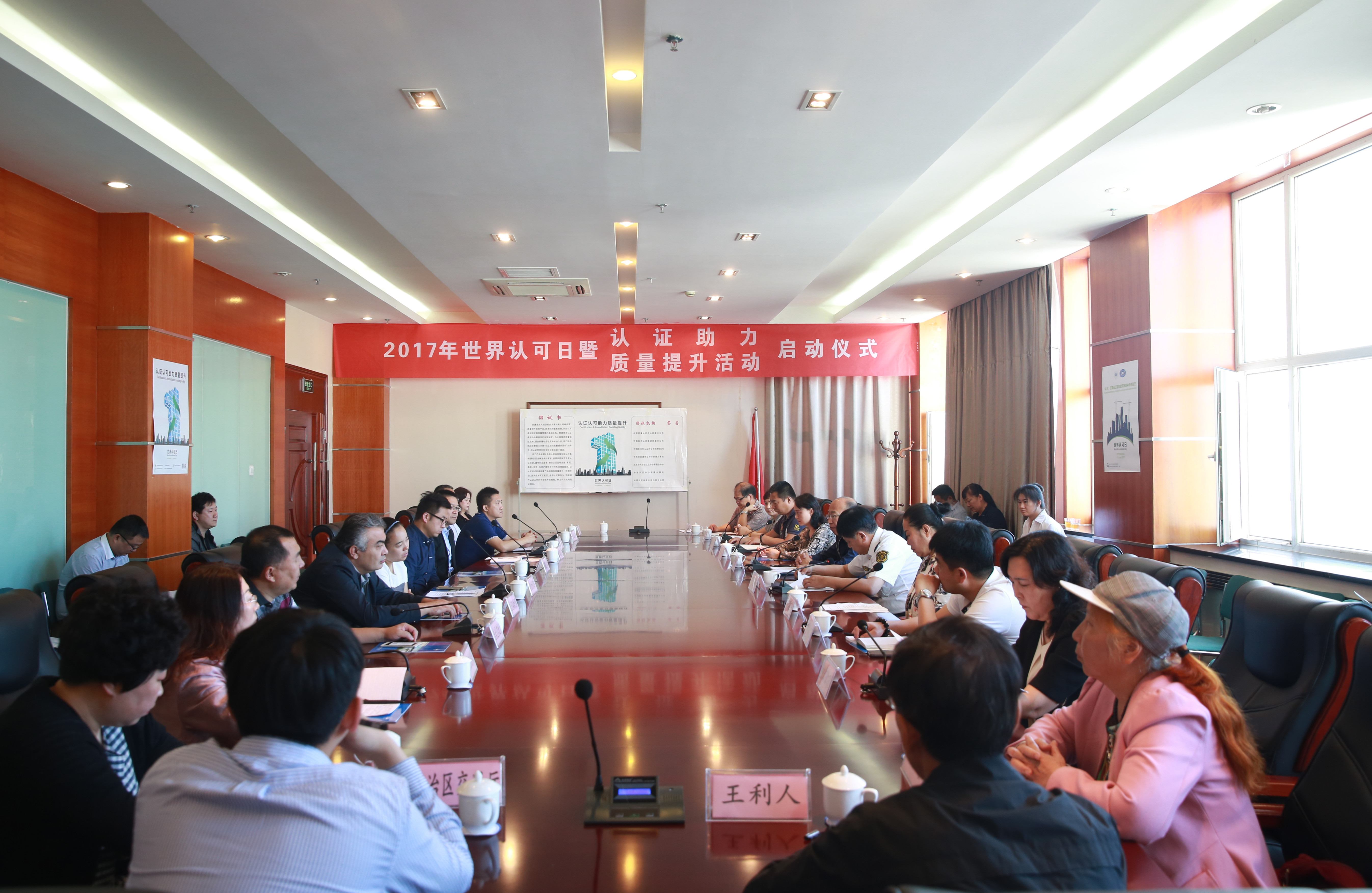 为进一步推进认证认可强国、质量强国建设和质量强区战略, 6月9日, 新疆自治区质量技术监督局(以下简称自治区质监局)、新疆出入境检验检疫局和兵团质监局联合举行2017年世界认可日暨“认证助力质量提升”活动启动仪式。活动由自治区质监局认监处于灵鹤处长主持,自治区质监局认证认可管理处、标准化处,新疆出入境检验检疫局认证监管处,兵团质监局标准化和区内相关认证机构、获证企业相关人员共40余人参加了活动。