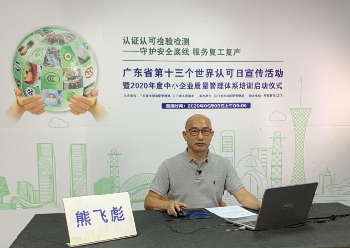 6月9日上午,广东省市场监管局、江门市人民政府以“认证认可检验检测:守护安全底线,服务复工复产”为主题组织开展世界认可日系列活动,此次活动内容全程以直播的方式呈现。广东省市场监督管理局丘瑞清副局长为此次活动启动并致辞,方圆广东公司熊飞彪常务副总以《守护安全底线,服务复工复产——认证认可检验检测在行动》为题向全省中小企业免费授课。授课内容涵盖认证认可检验检测服务复工复产、质量管理体系助力质量提升以及认证认可服务守护安全底线等内容。广东省各地市场监管部门及企业上线并广泛参与,社会反响极其热烈,好评点赞如潮,同时在线人员超过13万,创下同类活动单场次在线人数全国新高。