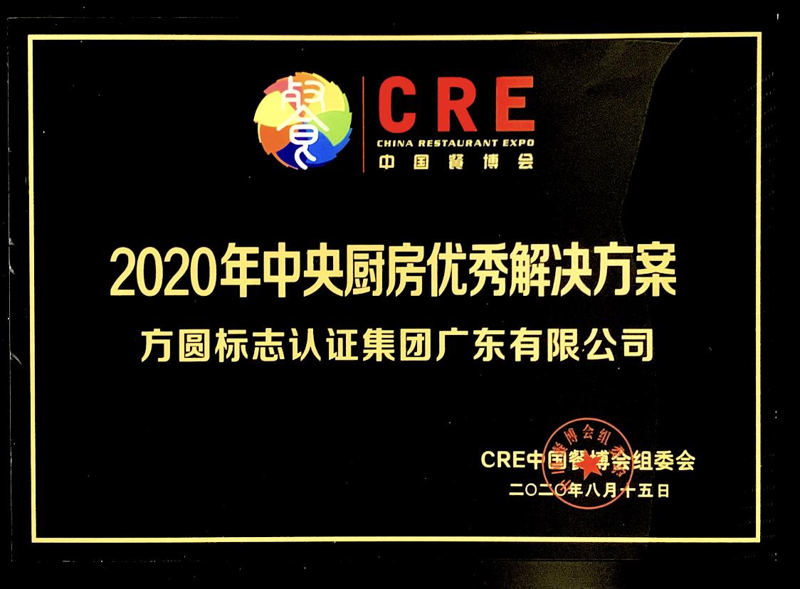 大会最后针对优秀服务商进行了颁奖,方圆广东公司被授予“2020年中央厨房优秀解决方案”奖项,得到组委员与各参会单位所肯定。方圆广东公司将继续做好推广食品安全认证的相关工作,助力集体用餐配送行业管理提升,保障广大师生“舌尖上的安全”,守护校园食品安全。