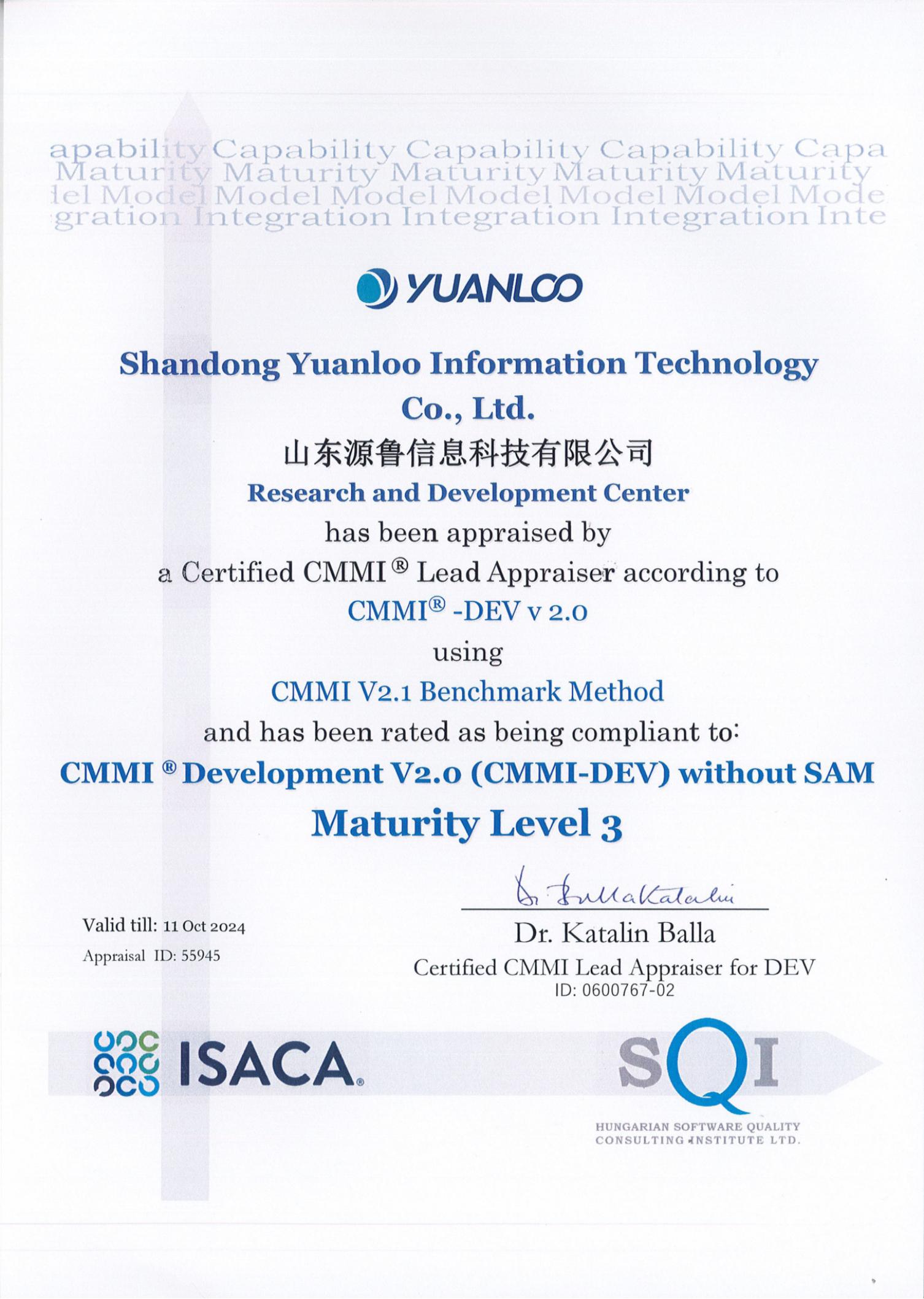 方圆山东公司持续为客户提供增值服务----山东源鲁信息科技有限公司顺利获得CMMI3证书