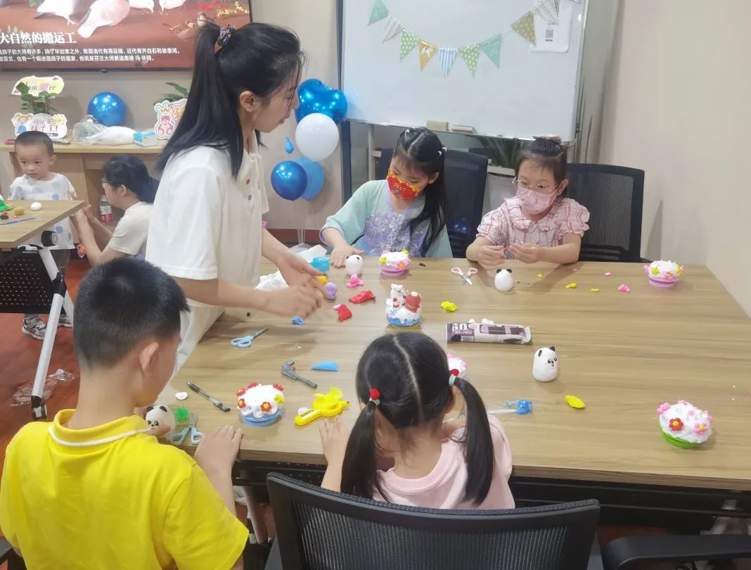 活动开始前,老师以游戏的形式把孩子们引入课堂,现场欢乐无限,而后老师向小朋友们讲解了端午节的由来,分享轻黏土相关知识、讲解制作轻黏土的“基本功”,例如揉、捏、搓、压等方法、色彩的混合方法、基本形状的制作等。讲解后,孩子们迫不及待地动手体验起来。